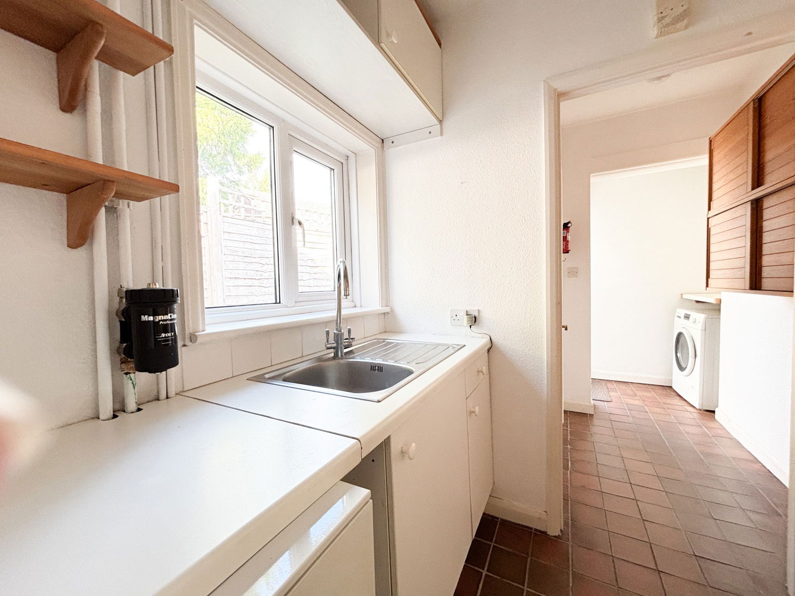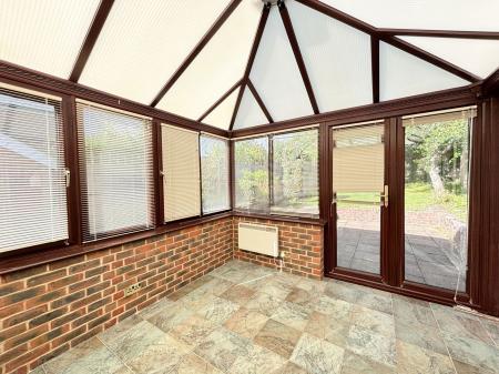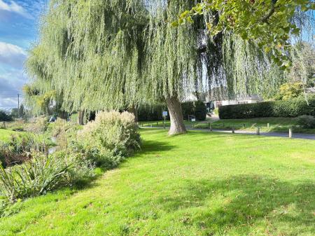The spacious accommodation begins with an entrance hall leading to a light-filled sitting room, featuring a charming box bay window with views across the green. The well-proportioned kitchen/breakfast room opens into a conservatory, with an adjacent utility room and guest cloakroom.
