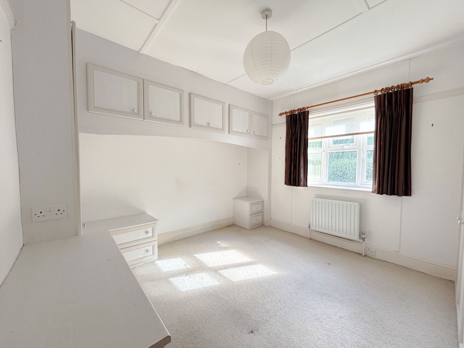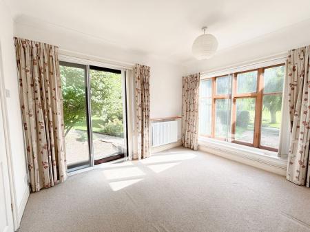 The large principal bedroom suite includes double doors opening onto the garden, an en-suite shower room, and a versatile additional living area—perfect for use as a dressing room, snug, or private sitting room. There are two further bedrooms, a family bathroom, and a useful study area or reading nook.