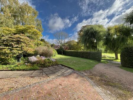 Outside, the gardens are mainly situated to the side of the property, offering excellent privacy courtesy of a mature beech hedge to the front. The property benefits from an in-and-out driveway providing ample parking, along with a double garage and a garden store/office to the rear. The overall plot extends to approx 0.22 acres.