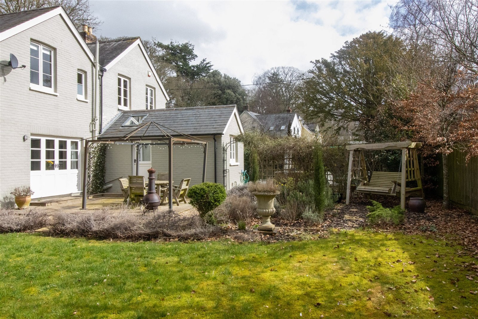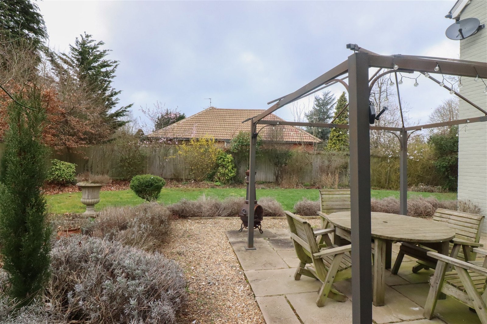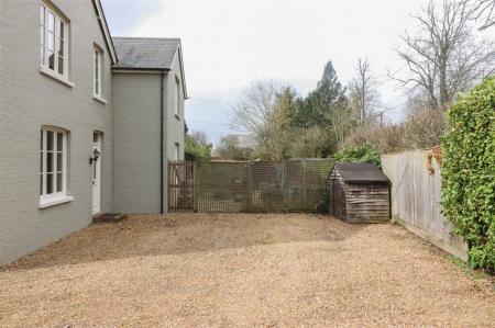 Outside to the front, there is a large gravel driveway allowing parking for a number of cars. From the driveway, a gate opens to a courtyard at the rear of the house, where there is a paved terrace and a garden shed. The attractive lawned garden is enclosed by mature hedging and flower/shrub borders. There is a further paved terrace with a pergola, a vegetable garden and second gate to the driveway.