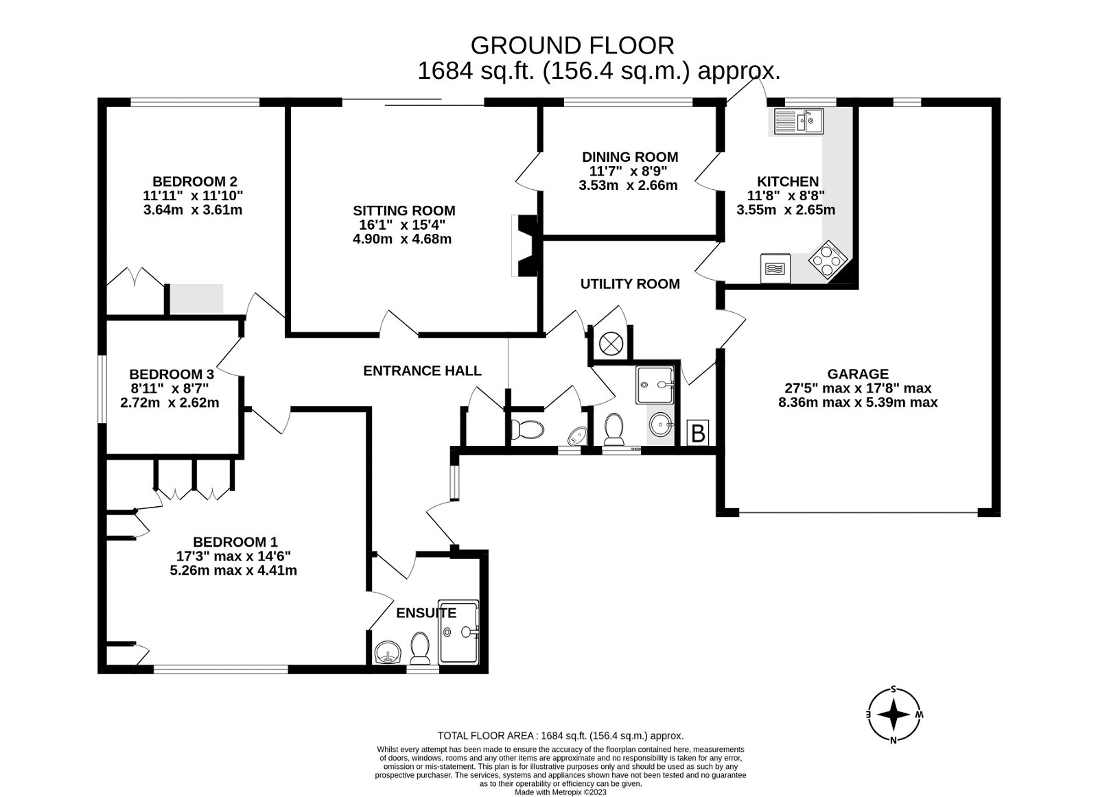 The bungalow is approached from the driveway with the front door opening to the entrance hall, where there is a cloakroom, shower room and coats cupboard. The sitting room features an open fire and sliding doors which open to the garden. A door leads through to the dining room and on into the kitchen, which features a range of fitted storage units, with worktops and integrated appliances. There is a utility room and separate boiler room, with an oil-fired boiler that was installed in 2021.