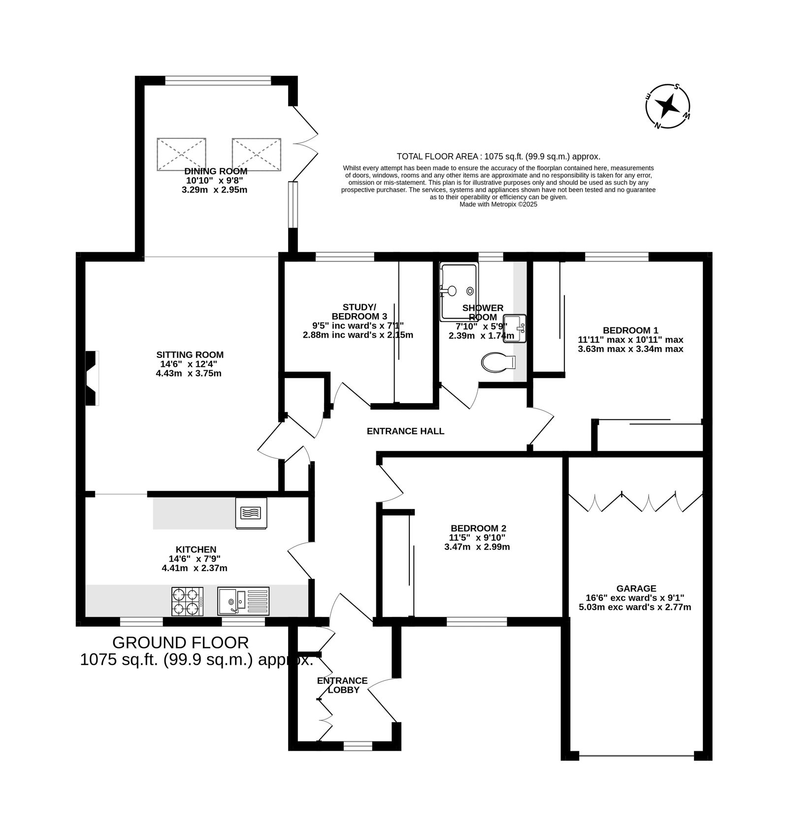 The property provides two comfortable double bedrooms and a third single bedroom, currently arranged as a study. A modern, fully tiled shower/wet room adds convenience and contemporary style.