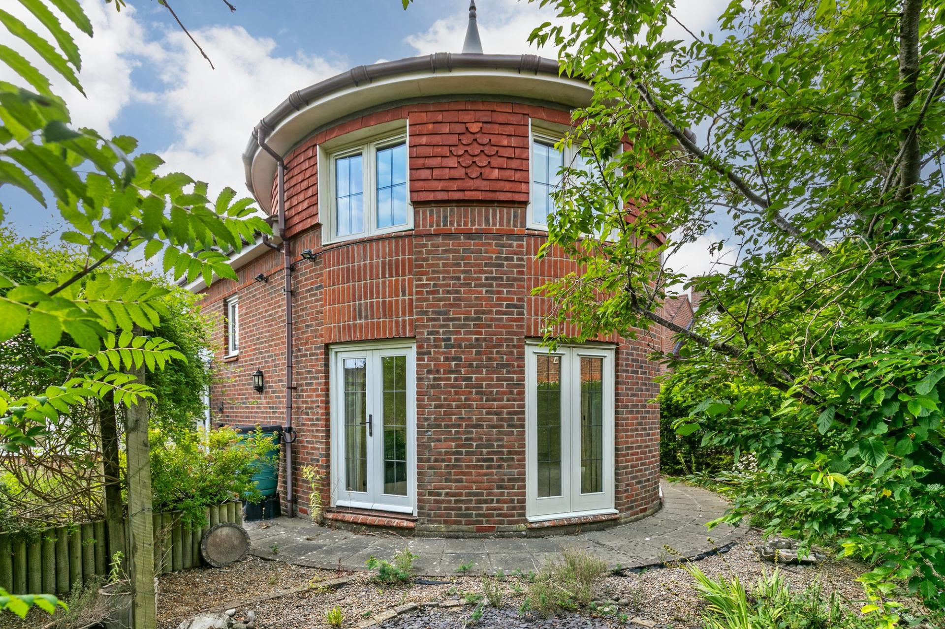Upstairs, the principal bedroom sits above the sitting room so enjoys the semi-circular space and has fitted wardrobes and an ensuite shower room. The two further bedrooms both have built-in wardrobes and are served by the family bathroom.