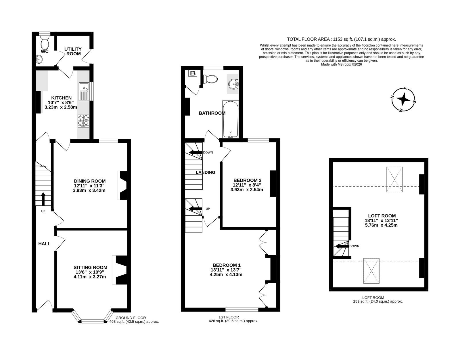- Two Bedrooms plus Loft Room