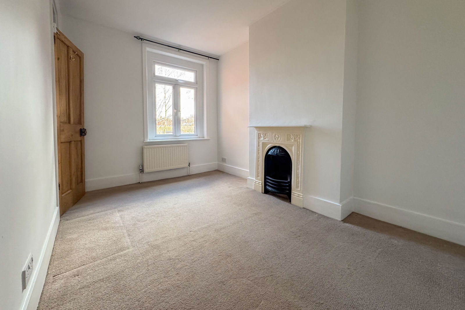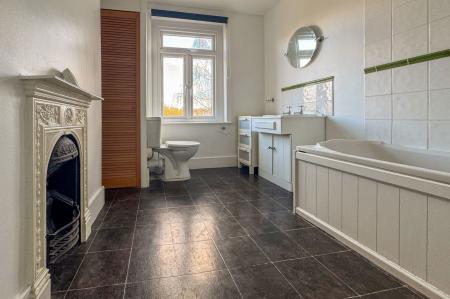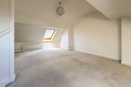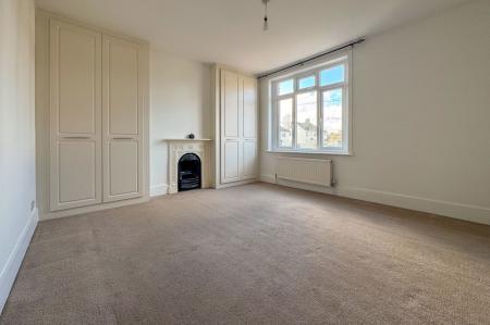 On the first floor, the principal bedroom to the front is particularly generous and filled with natural light, again featuring a fireplace. A second double bedroom overlooks the rear garden, complemented by a well-proportioned family bathroom. Stairs rise to a loft room, which has Velux windows.