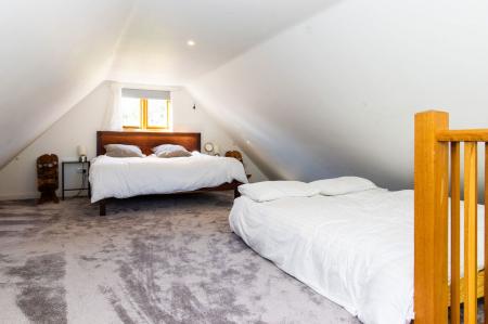 Stairs from the sitting room lead up to the first floor landing, where there is a window and eaves storage. The principal bedroom has built-in wardrobes, an en-suite shower room and dual aspect windows with views over the garden. The second bedroom is also a double room, with built-in wardrobes/storage. The third bedroom is a single room with built-in storage, whilst the fourth bedroom is fitted with a built-in cabin bunk. There is a family bathroom, with eaves storage.