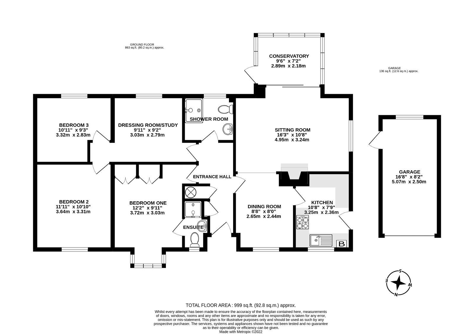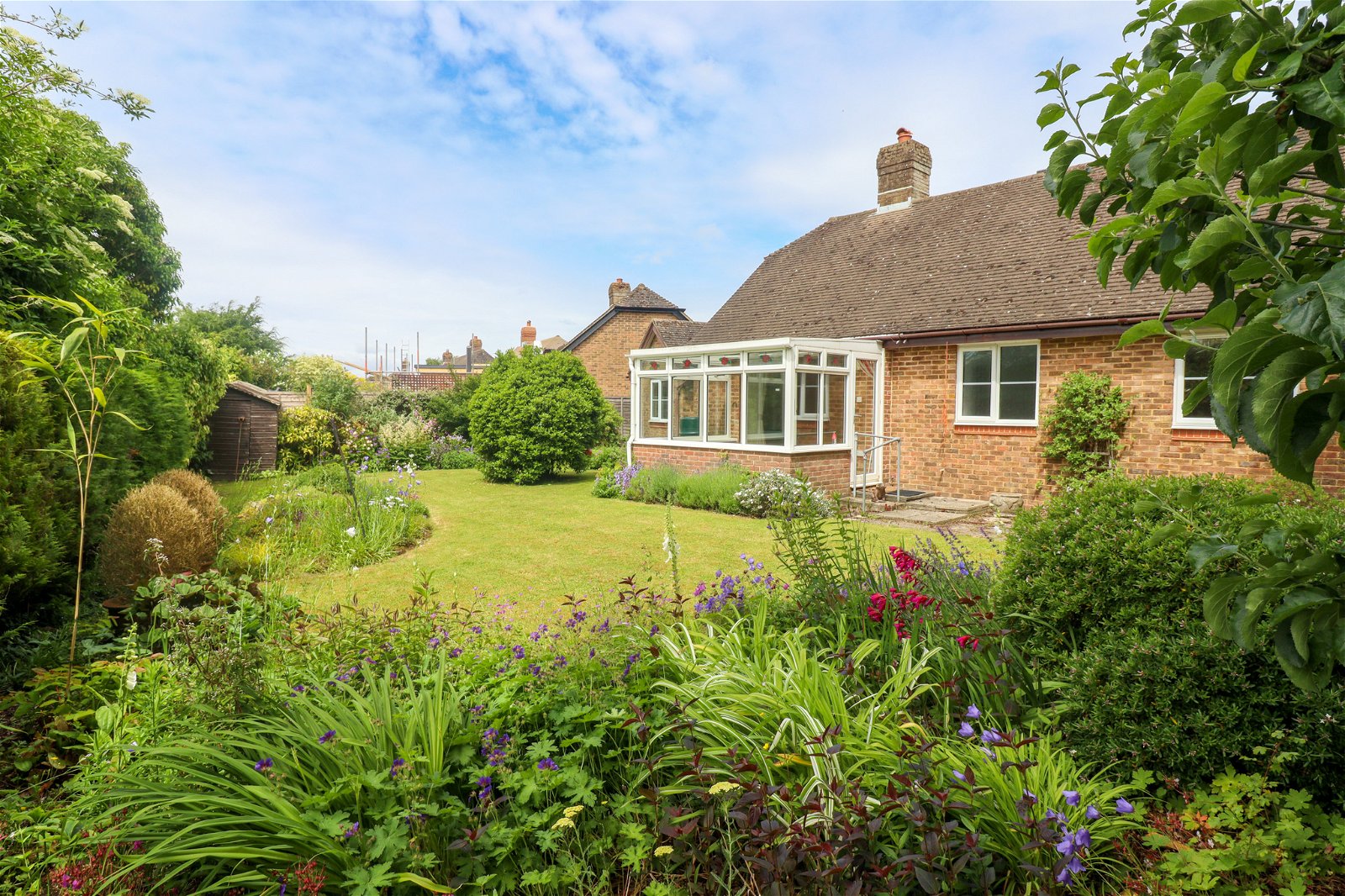 An extended three bedroom bungalow located in a lovely corner position at the top end of this quiet cul-de-sac. To the rear of the bungalow there is a pretty, southerly-facing garden, which enjoys a high degree of privacy and seclusion. There is driveway parking and a detached garage. The bungalow has been well-maintained and is presented in good decorative order, and is offered for sale with no onward chain. A path runs across the front garden to the front door. There is an airing cupboard and small coats cupboard in the entrance hall. A door to the right opens to the dining room, with a wide arch through to the sitting room, which features a gas coal effect fire. Sliding doors open to a glazed conservatory with a further door to the garden. The kitchen has a range of fitted units with worktops, a concealed boiler and door to outside. The main bedroom features fitted wardrobes and an en-suite shower room. The original second bedroom now provides access to the extension, where there are two double bedrooms. Outside, there is a low maintenance front garden with driveway parking leading to the garage. A gate to the side of the bungalow allows access to the southerly-facing rear garden, which enjoys a high degree of privacy and seclusion. Alresford is a beautiful Georgian town known for its variety of independent shops, restaurants and inns located in stunning surroundings on the edge of the South Downs National Park. Attractions include the Watercress steam railway, schools for infant, junior and secondary education, several churches and an active and inclusive community. Highlights in the calendar include the annual Watercress Festival in May and the Agricultural Show in September. The cathedral city of Winchester is about 7 miles away and there is easy access to the south coast, the midlands and London via the road network. There is also mainline rail access to London from both Winchester and Alton. Southampton airport is only about half an hour away by car