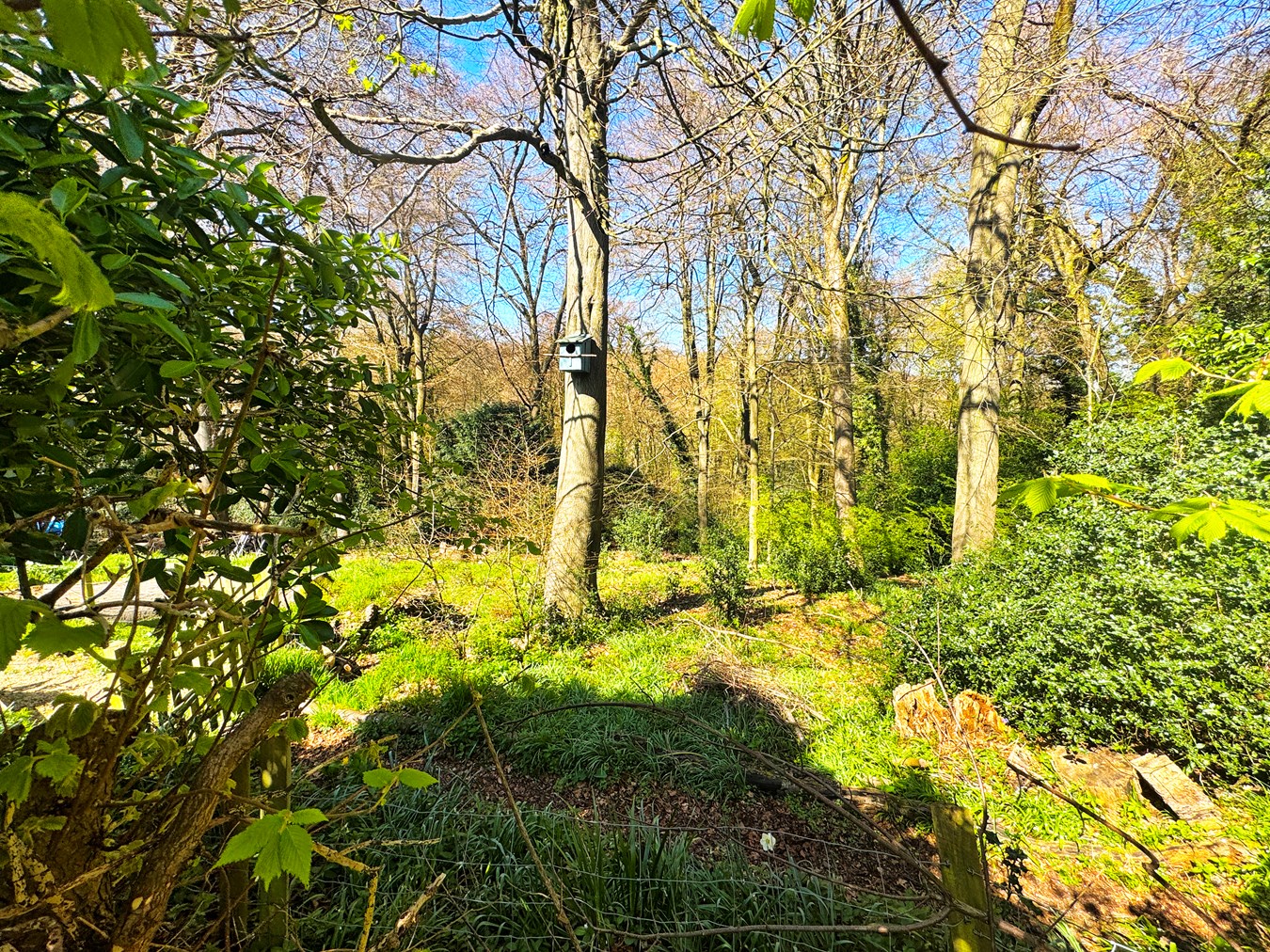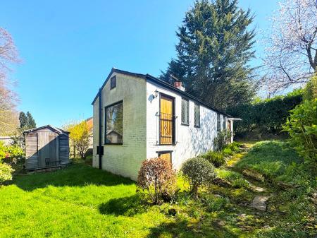 Set within a wrap-around garden, the property features an attractive lawned area and enjoys views over the surrounding woodland, providing a tranquil setting and a true feeling of connection with nature. An external hatch beneath the living room leads to a good-sized, half-height storage space, offering ample additional storage opportunities. Parking is available on a casual, first-come, first-served basis.