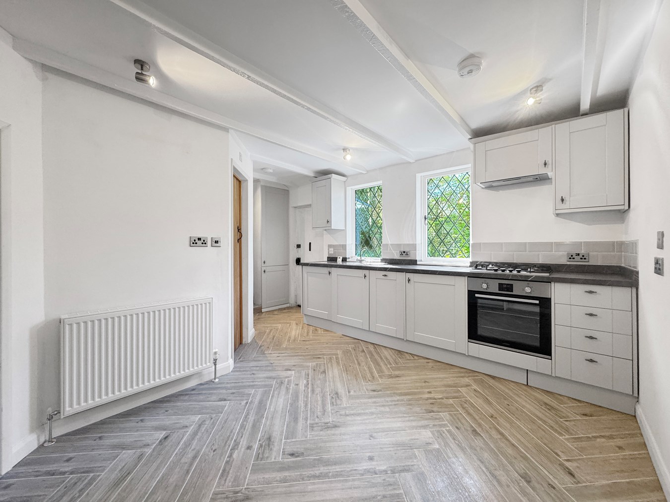 The front door opens into a well-appointed kitchen, fitted with a range of attractive wall and base units and complemented by integrated appliances including a separate fridge and freezer, dishwasher, washing machine, gas hob and low-level oven, as well as a radiator. A Worcester boiler is neatly housed within a kitchen cabinet.