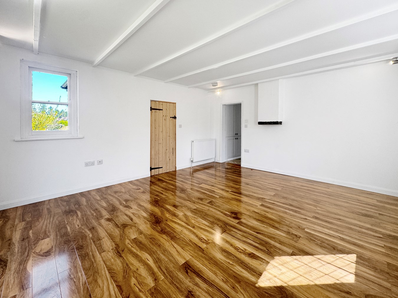 The master bedroom, with matching wood flooring, enjoys the convenience of an en-suite shower room complete with WC and wash hand basin. In addition, there are two further double bedrooms, both continuing the attractive wood flooring.