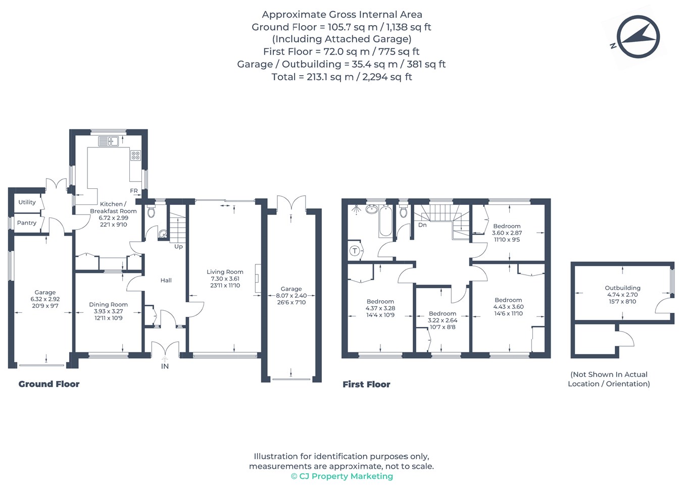 The large entrance hall opens up into a 23' living room with a gas fireplace and double doors leading onto the rear garden on one side and a formal dining room to the other side. A generous kitchen/breakfast room has fabulous views of the garden and woodland to the rear with a door leading to a handy utility area with a pantry cupboard, drying cupboard and integral door to the 20' garage. There is a second, larger garage on the opposite side of the house measuring 26' in length. Both of these garages are ideal for extending into the main living space of the house. Finally, a ground floor cloakroom sits off the entrance hall with an understairs cupboard housing the washing machine.