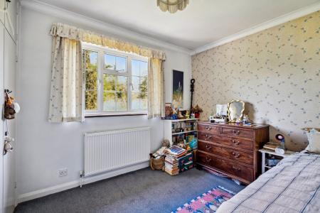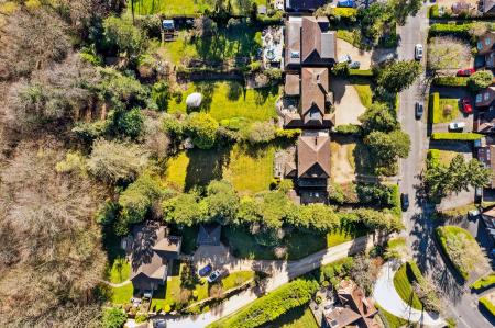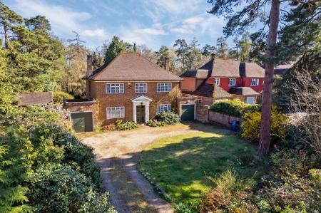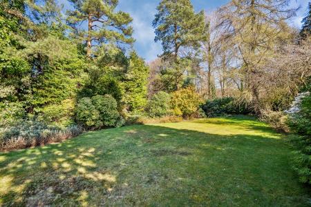 The house is set in mature gardens of just under half an acre and backing onto Great Bois Wood. The lovely sweeping front drive provides ample parking for several vehicles and is surrounded by established trees and plants. The south westerly rear garden is mainly laid to lawn with an area of patio but then extends all the way past a row of laurel hedging and beyond through a gate into the woodland. The outbuilding just to the left of the rear utility room door is an ideal space for modernizing into an office, studio or gym. The gardens are magnificent and a further extension of the great potential this home offers.