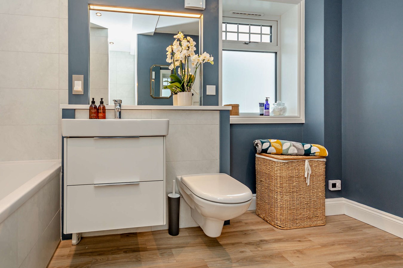 The bright landing leads to four generous double bedrooms all of which will easily house wardrobes, desks, cabinets etc. Two of the bedrooms already contain wardrobe units and all are beautifully decorated and filled with plenty of natural light. The landing which contains two good sized storage cupboards also leads to the modern family bathroom with both a bath and separate shower and underfloor heating.