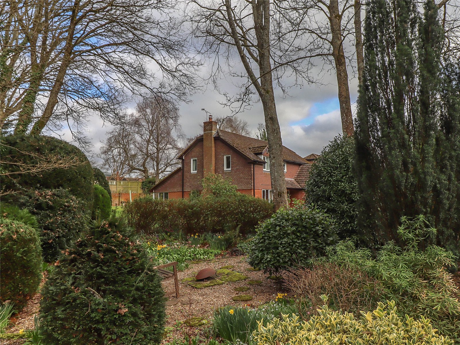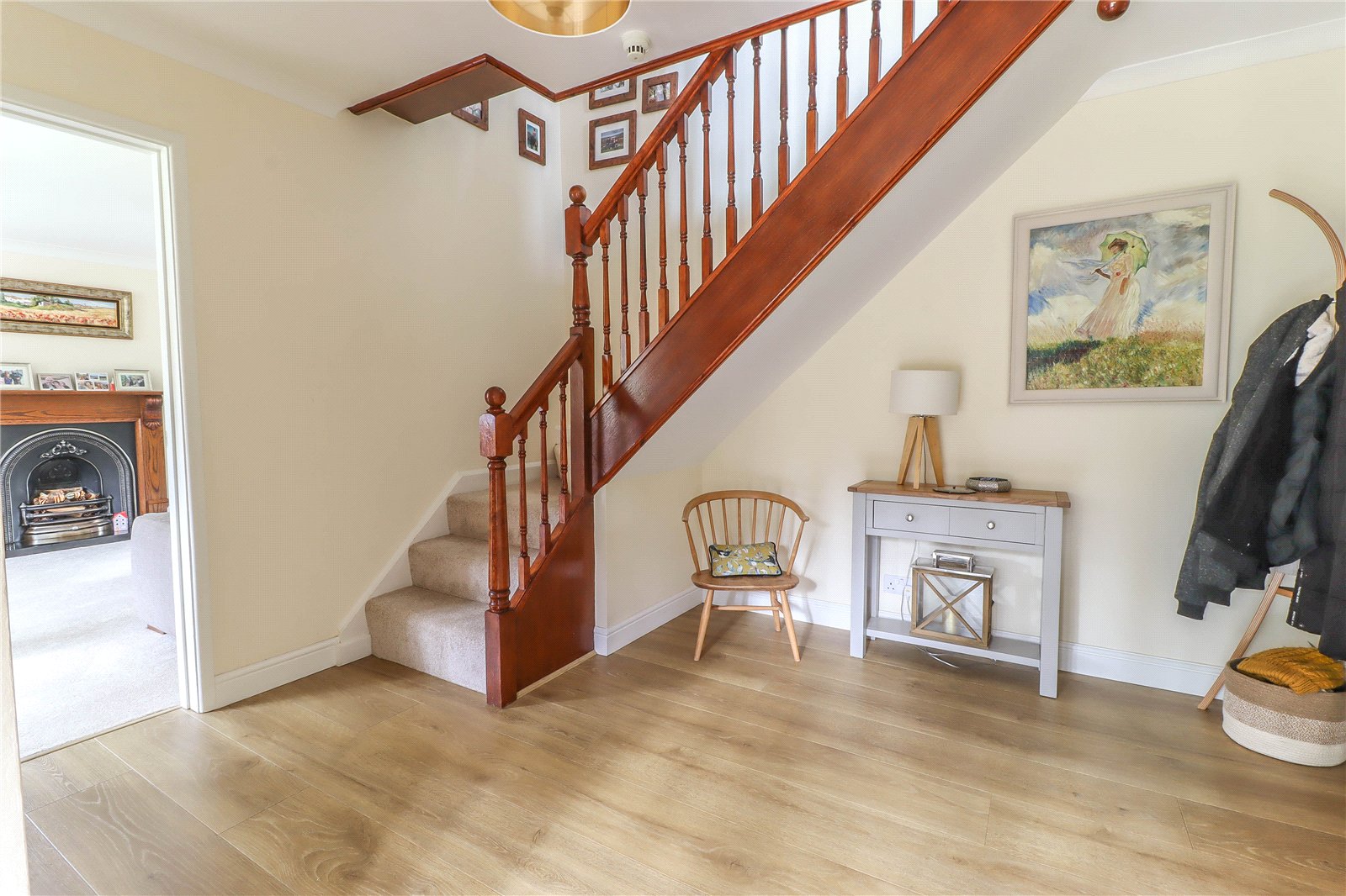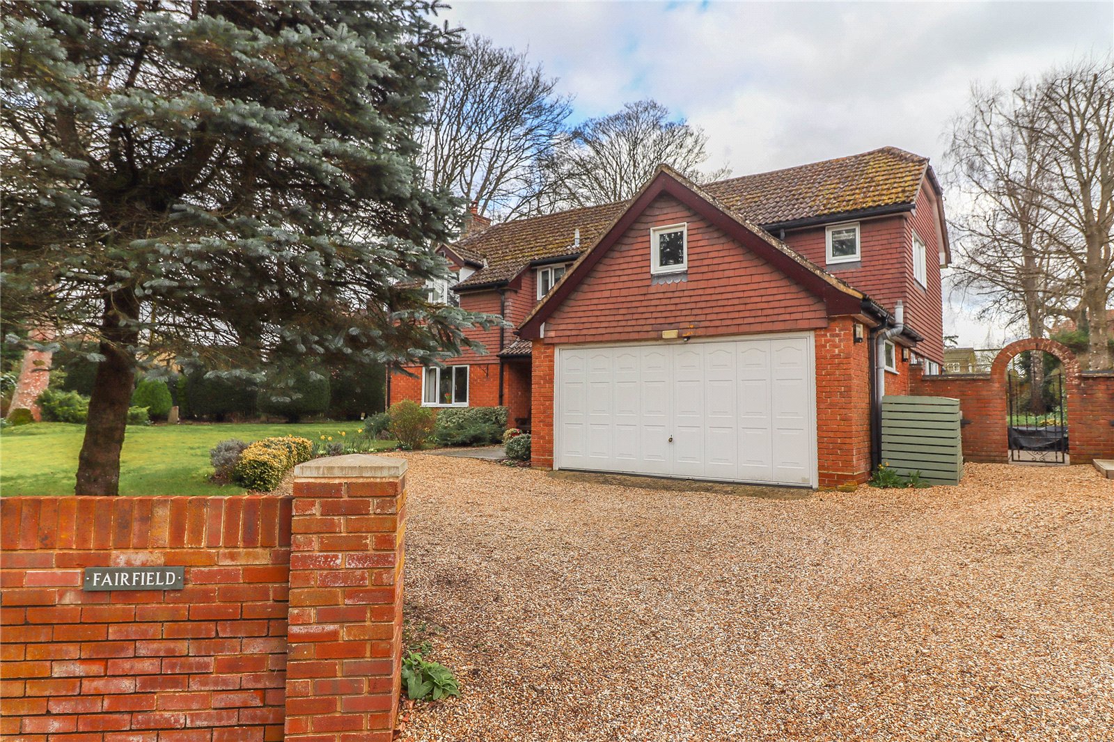 Fairfield is a detached family house enjoying an attractive elevated setting on the edge of this beautiful village, standing in a generous plot of approximately 0.37 acres with terrace areas, lawns, mature trees and a charming woodland garden with space for a firepit. The present owners have improved the property in recent years, most notably by removing the wall between the kitchen/breakfast room and dining room to create an impressive open-plan live-in space ideal for modern family life and entertaining; the kitchen has been completely replaced and is well appointed with stone worktops and integral appliances, with the adjoining utility refitted in the same style. The well-balanced accommodation also includes a reception hall with cloakroom, living room with open fireplace, garden room and study/playroom, while the first floor offers a triple-aspect principal bedroom with en suite shower room, three further double bedrooms and a family bathroom, with the loft above the garage, carpeted and decorated, providing a children?s den or storage space accessed via the third bedroom.