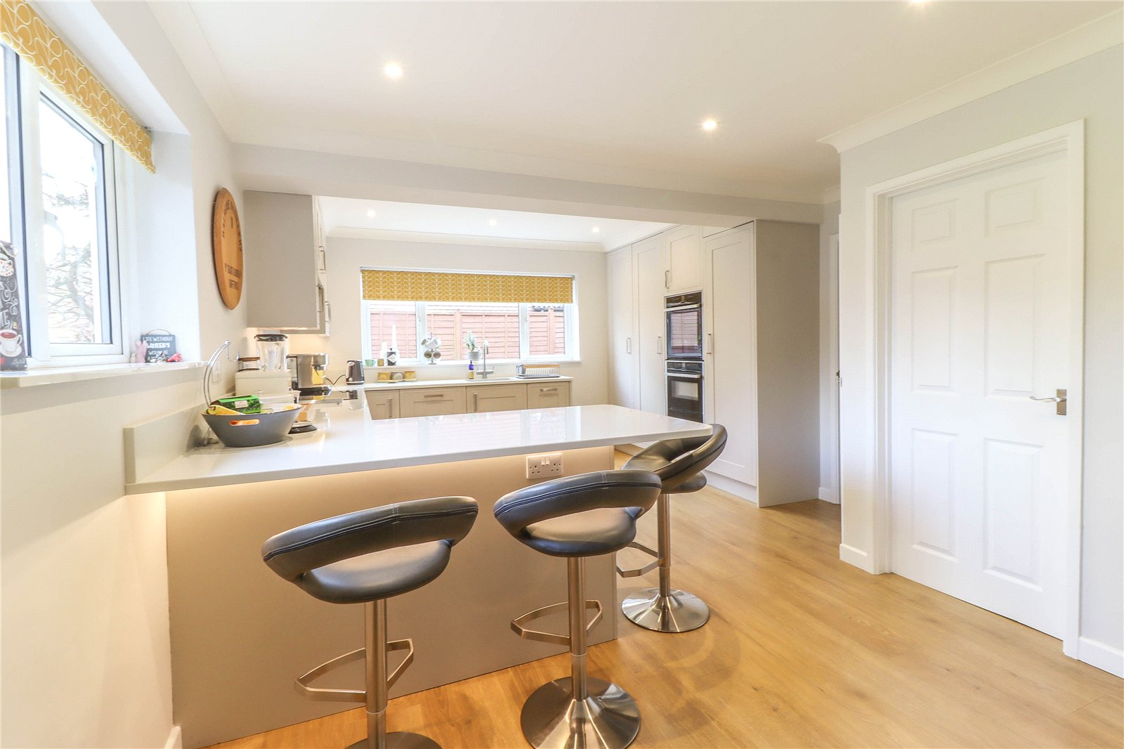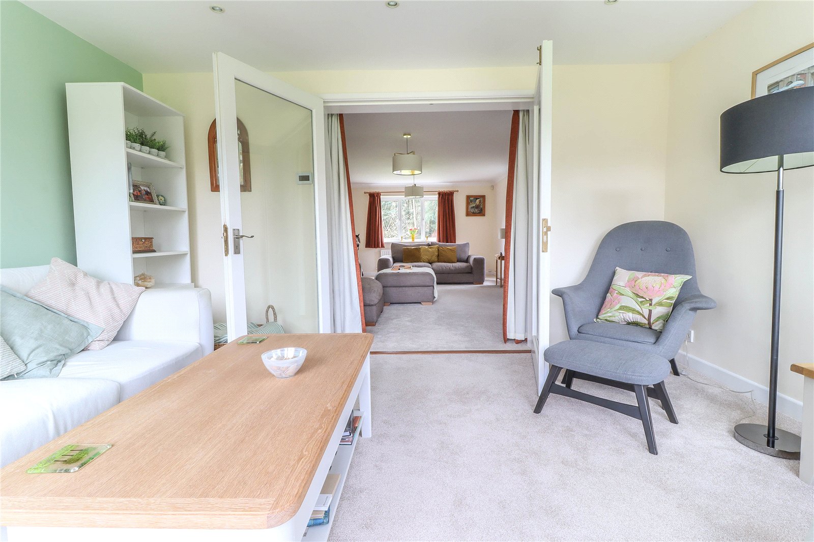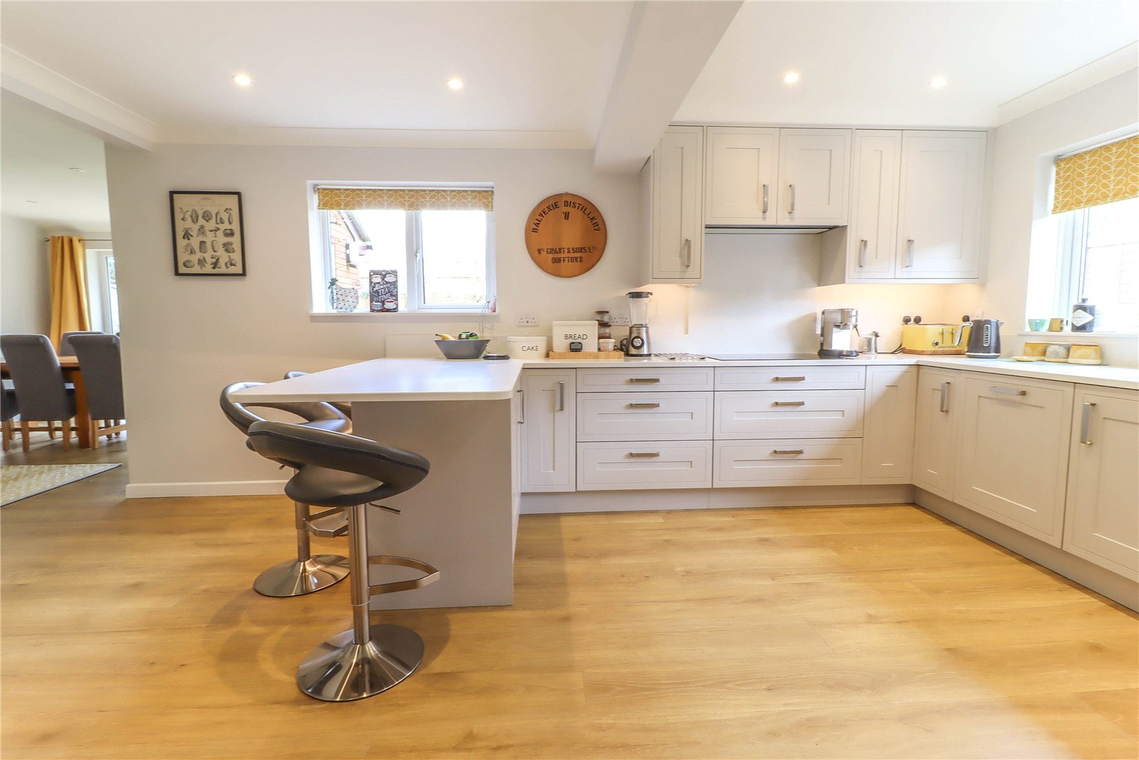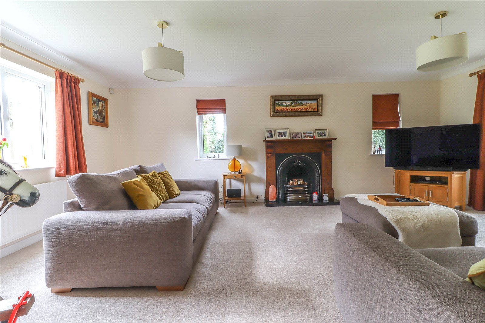 Fairfield is a detached family house enjoying an attractive elevated setting on the edge of this beautiful village, standing in a generous plot of approximately 0.37 acres with terrace areas, lawns, mature trees and a charming woodland garden with space for a firepit. The present owners have improved the property in recent years, most notably by removing the wall between the kitchen/breakfast room and dining room to create an impressive open-plan live-in space ideal for modern family life and entertaining; the kitchen has been completely replaced and is well appointed with stone worktops and integral appliances, with the adjoining utility refitted in the same style. The well-balanced accommodation also includes a reception hall with cloakroom, living room with open fireplace, garden room and study/playroom, while the first floor offers a triple-aspect principal bedroom with en suite shower room, three further double bedrooms and a family bathroom, with the loft above the garage, carpeted and decorated, providing a children?s den or storage space accessed via the third bedroom.