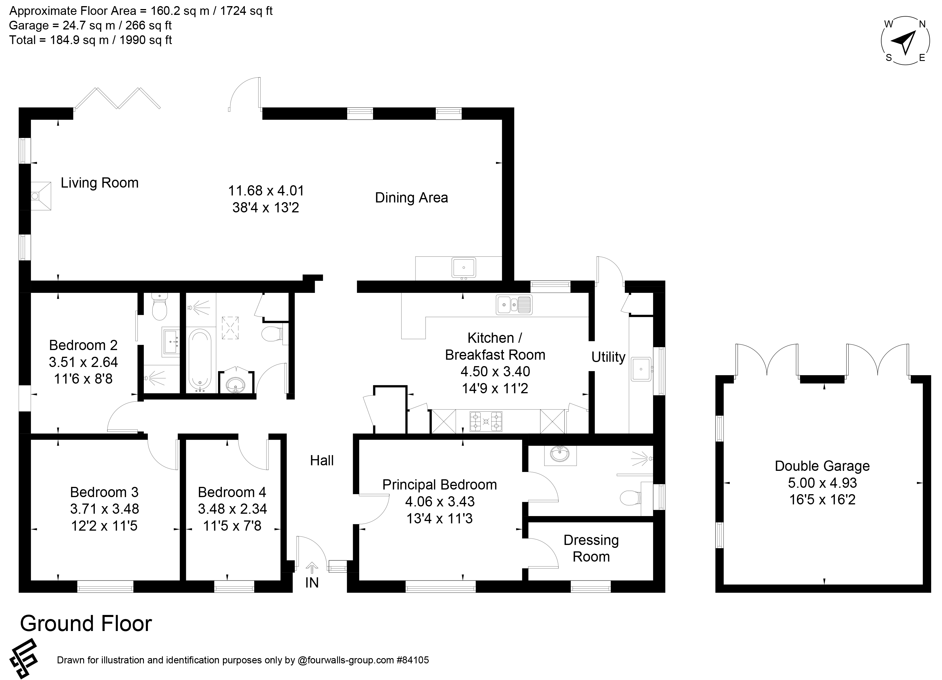 - Open plan living - four double bedrooms