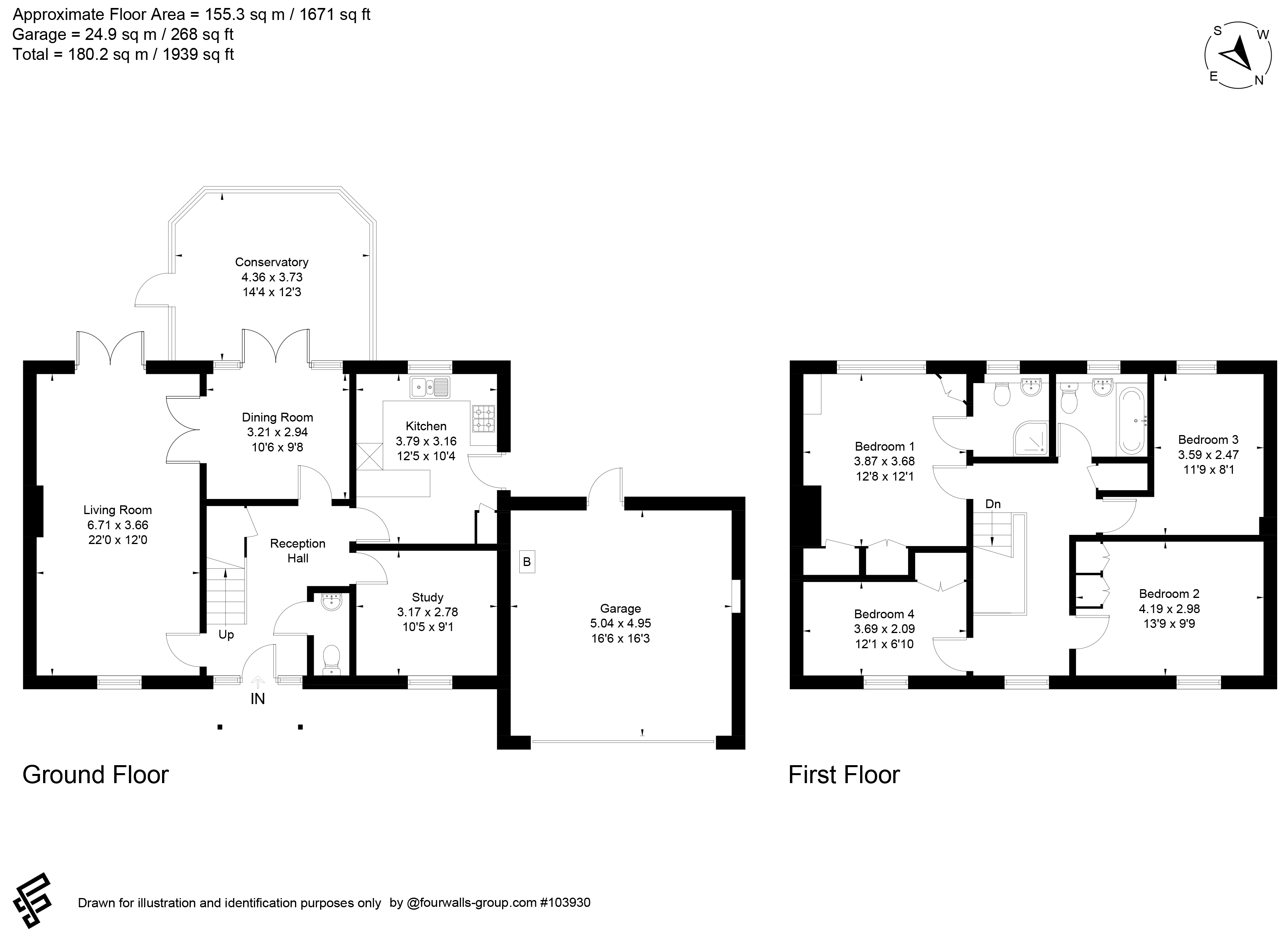 - RECEPTION HALL, CLOAKROOM, LIVING ROOM, DINING ROOM, CONSERVATORY, STUDY / OFFICE, KITCHEN