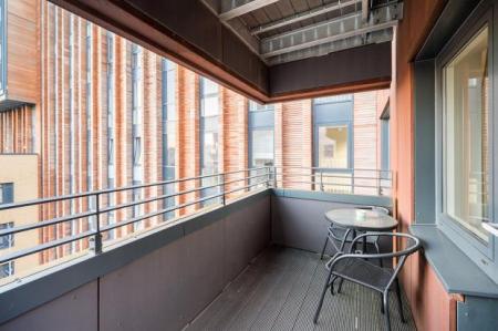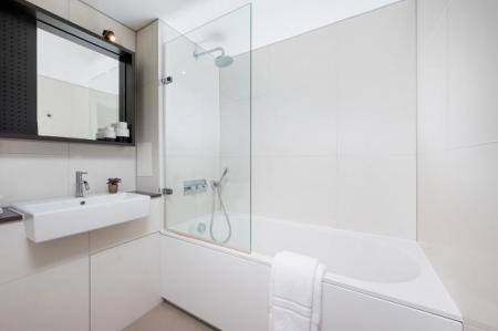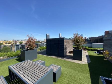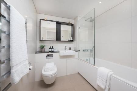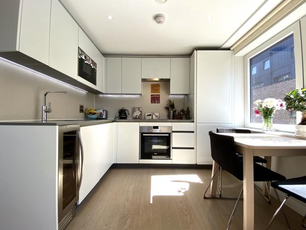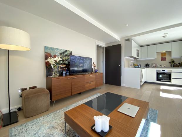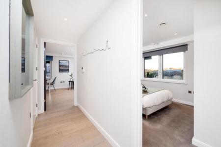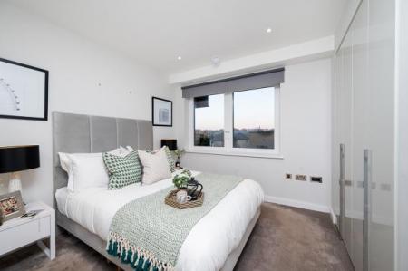 Boasting impressive presentation throughout, this beautiful home consists of an airy open plan reception room which leads out to a private balcony, a modern fully fitted kitchen featuring composite stone worktops and all Siemens appliances, master bedroom which has an abundance of space with full height built in wardrobes with soft closing doors in matt lacquer finish and internal LED feature lighting and the fully ceramic tiled 3 piece bathroom suite. The apartment also enjoys engineered timber flooring to hallway, living room and kitchen and Lusso silk effect carpet and a video entry system. The development benefits from an energy efficient heating system, under floor heating, lift access, 24h concierge facilities, bike storage, leisure space and a large landscaped communal roof terrace.