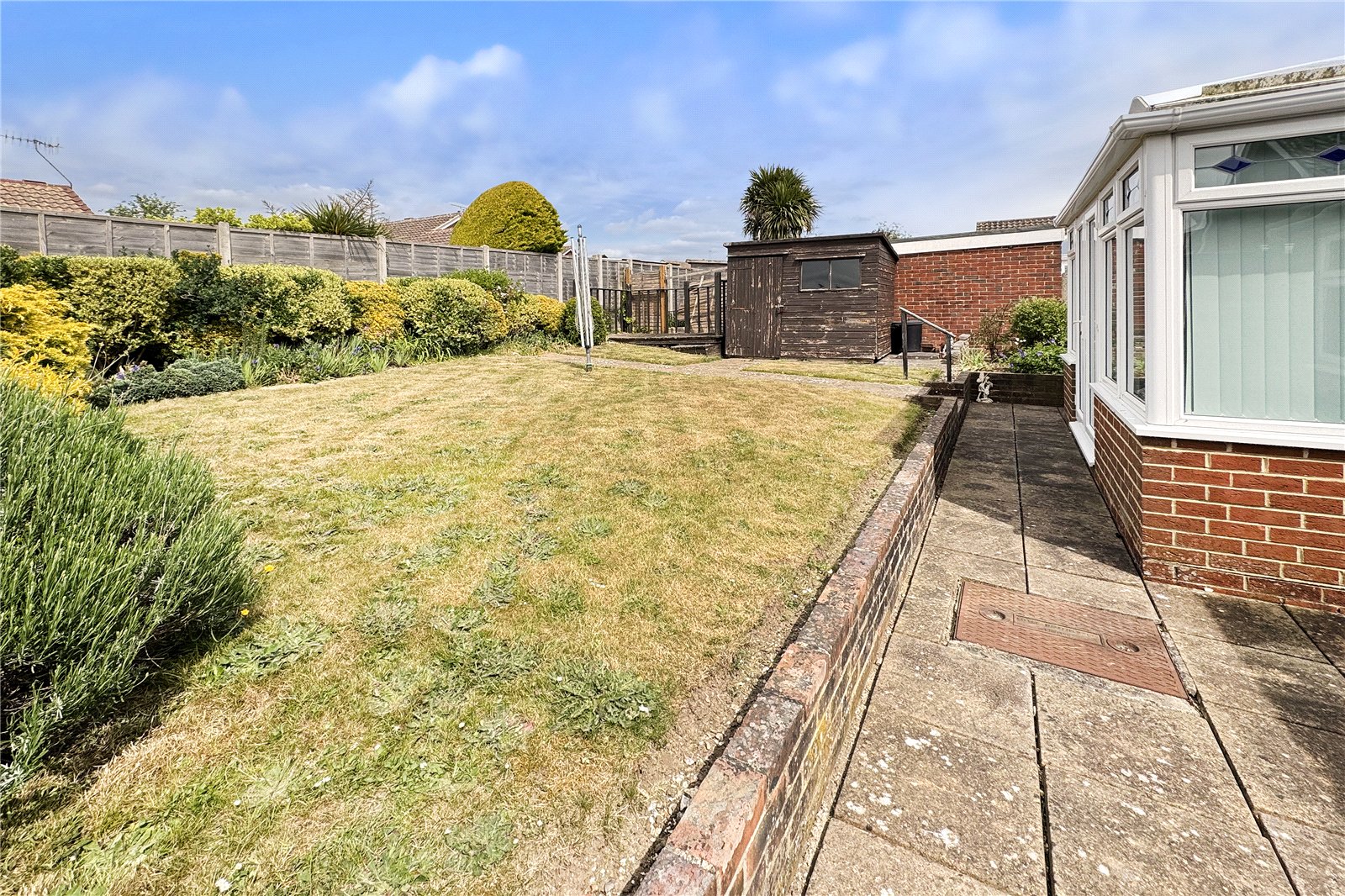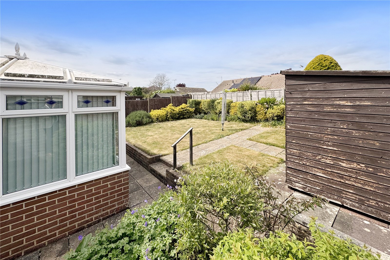 - Low-maintenance west-facing garden catches afternoon/evening sun