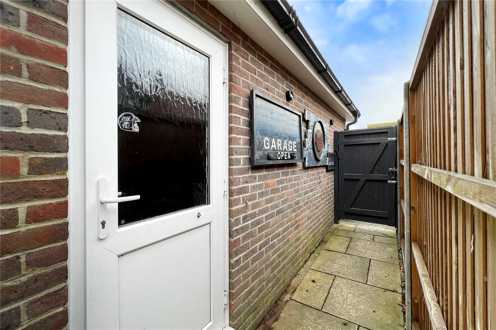 The west facing rear garden has been landscaped for low maintenance, and there is an attached pergola for the patio seating and also side access to the garage.