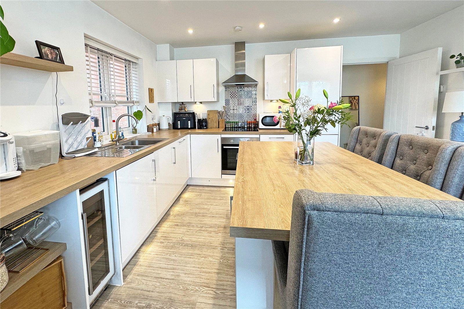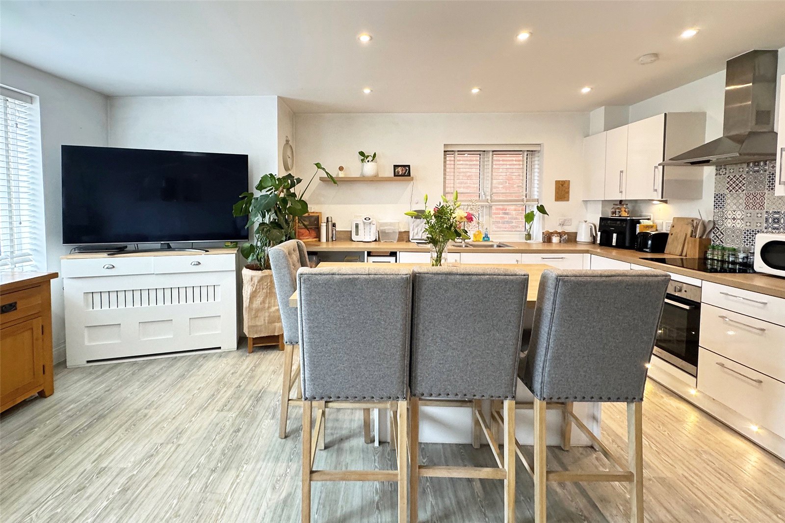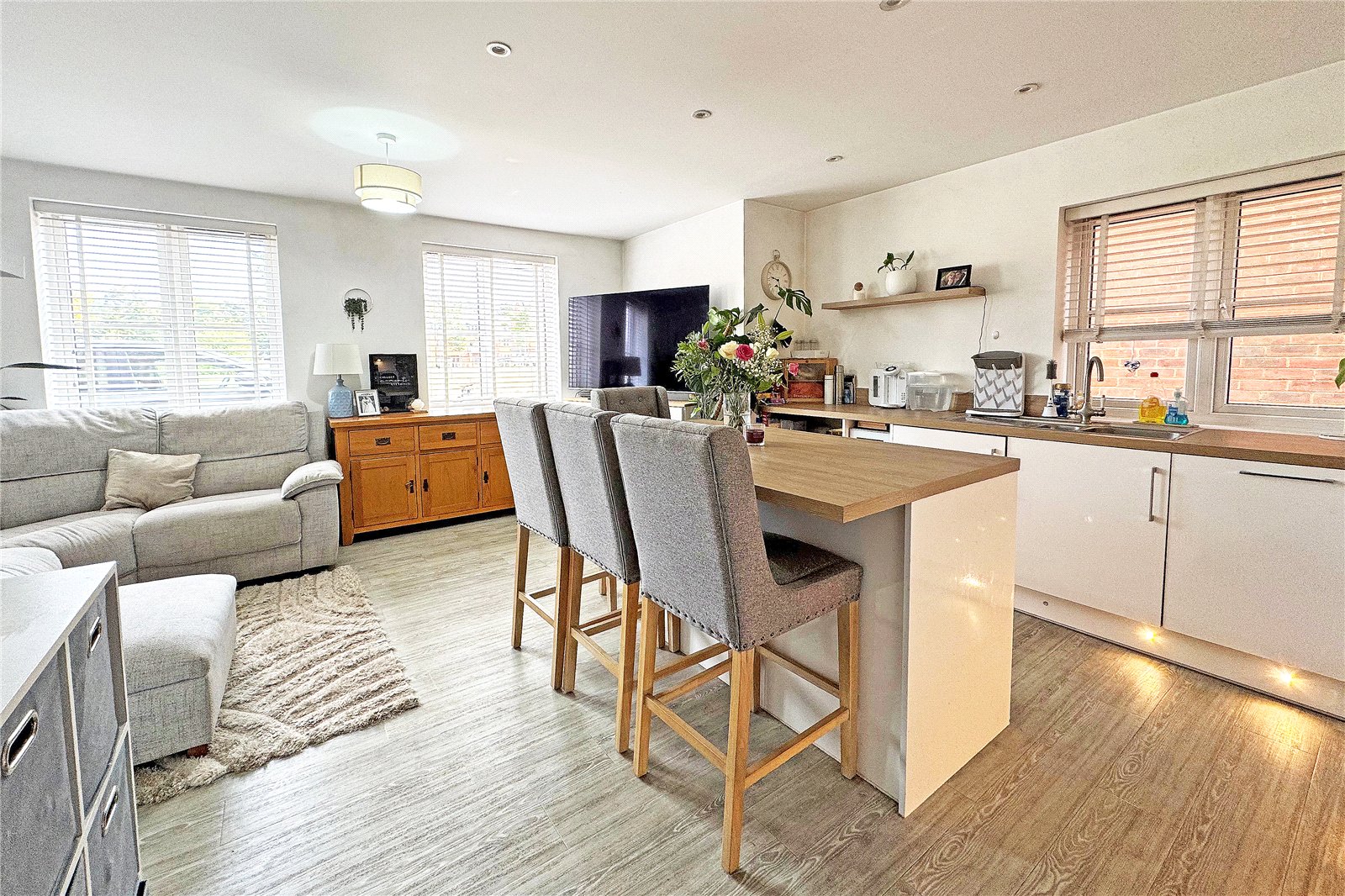 - Spacious open-plan kitchen/diner/living room with central island