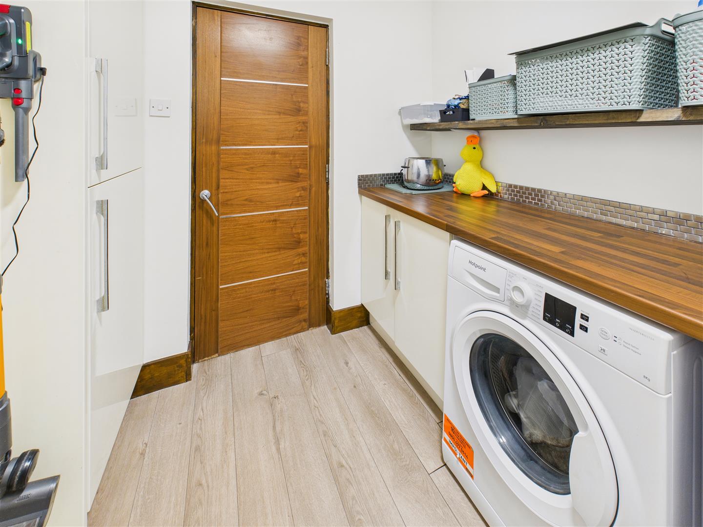 Utility - Fitted units and worksurfaces, plumbing for washing machine.