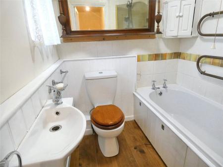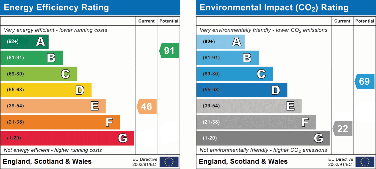 Upstairs, there are two bedrooms and a family bathroom. The property benefits from double-glazed windows throughout and is fitted with night storage heaters. The property is in need of some minor modernising.