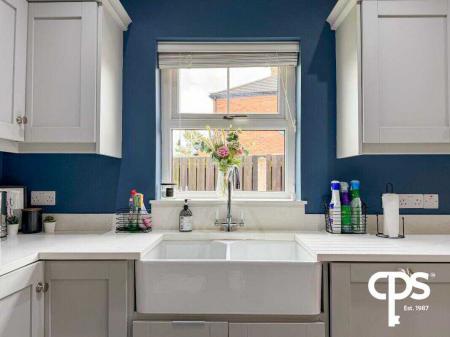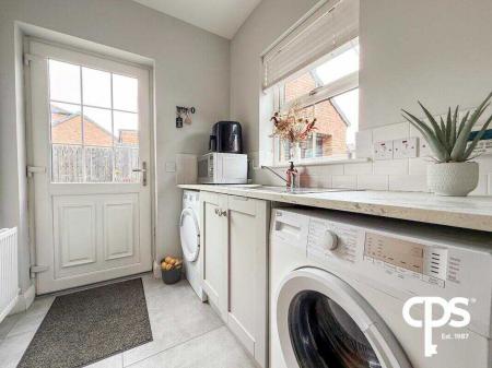 Utility Room (1.99m x 2.74m): A highly practical space with similar style flooring to the kitchen, fitted with low-level units, plumbing for a tumble dryer and washing machine, and a stainless-steel sink. Access to the rear of the property is also provided via a back door.