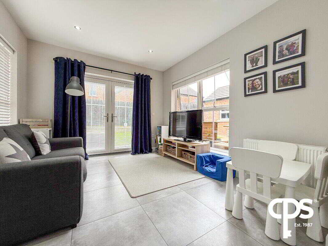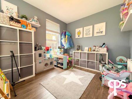 Front Reception / Playroom (2.81m x 3.50m): Just off the hallway, this versatile room features attractive wood-effect flooring, perfect as a second sitting area, a dedicated playroom, or a home office.
