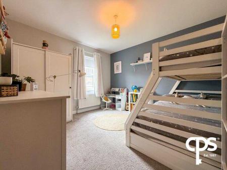 Bedroom 3 (2.68m x 2.75m): A well-appointed rear-facing bedroom, complete with attractive wooden effect flooring.
