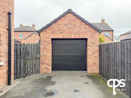 To the front of this superb property, a private gated driveway in tarmac provides ample parking for multiple cars, offering both convenience and security. There is also a small, neat front garden. The driveway thoughtfully leads around to a detached garage (5.24m x 3.30m), which benefits from a roller door, concrete flooring, and is fully fitted with electrics. To the rear, a private garden, primarily laid in lawn, offers a delightful space for children to play, complemented by a dedicated entertainment area, perfect for outdoor gatherings and relaxation.
