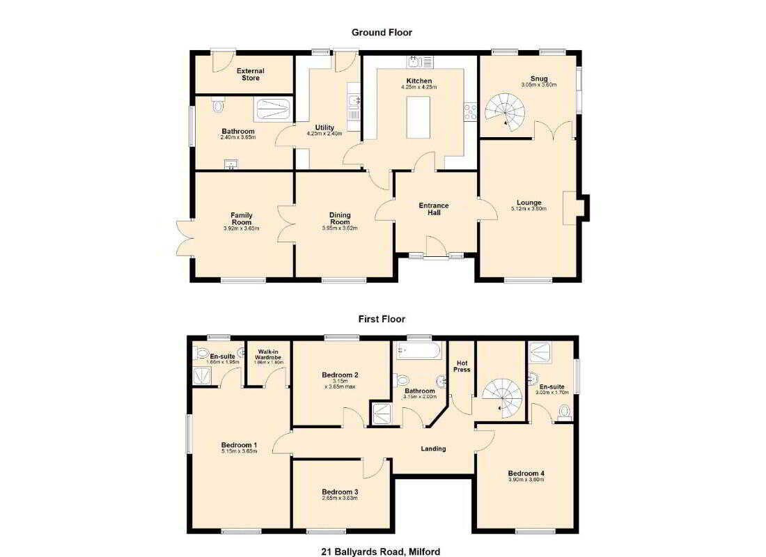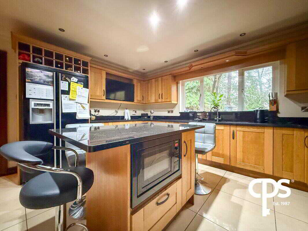 21 Ballyards Road is an impressive, spacious detached home offering versatile accommodation throughout. Perfectly suited to modern family life, this property combines generous living areas with five well-proportioned bedrooms, two en-suites, multiple reception spaces, and excellent external facilities. Set within mature and private grounds, the home benefits from beautifully defined boundaries and a serene setting while remaining conveniently close to local amenities, schools, and transport links.