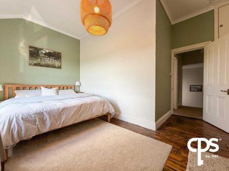 The main bedroom of this property comes with a stylish and neutral solid wooden flooring throughout with a bright décor to match. The spacious double bedroom benefits from fitted electrical sockets and a single panelled radiator installed within. This frontal facing room benefits from 3 meters ceiling height.
