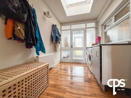 The utility room which is accessed via the living room carries through the same style of units as the kitchen and flooring as the living room. The utility room offers ample space for a washing machine and tumble drier alongside presenting a panelled radiator. Extra worktop and cupboard space is also added.