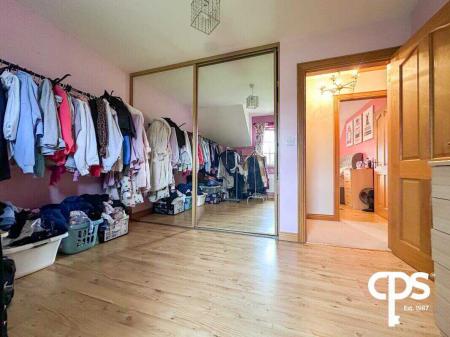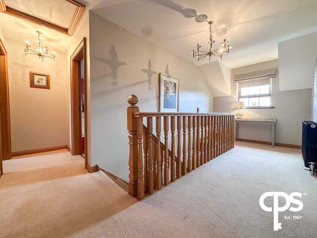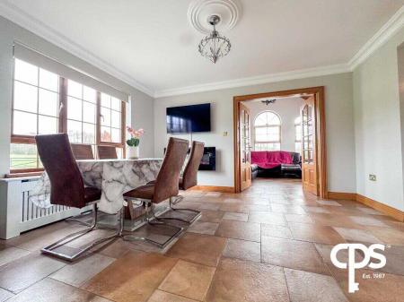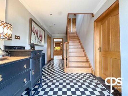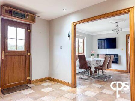 On approach to the residence you are greeted to double electric iron gates ensuring both security and style, continuing up the tarmacked driveway you approach the property surround by generous grounds with the mature trees surrounding the property creating a very natural boundary with plenty of space, lawn and charming shrubbery. To the rear of the property you will find the raised wooden patio area which is positioned perfectly to be south facing for all your summer entertainment needs. Also to side of the property is where you will find your detached garage. The property sits on a 0.57 Acre Plot.