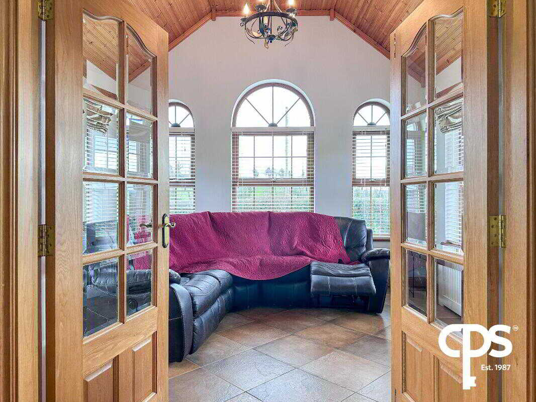 Just off the kitchen area you will find the sunroom area this area boasts the same porcelain tiles as kitchen throughout and has 3 meter ceiling heights with full length windows creating a beautiful bright and open space. Room has been fitted with electrical and TV sockets throughout as well as boasting fixed radiators.