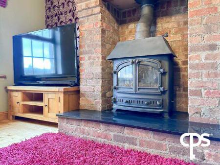 The living area boasts solid wooden flooring throughout and benefits from large frontal facing windows create ample lighting. The room also has electrical points fitted throughout with a double radiator and boasts a wood burning stove that sits on a granite hearth with a magnificent brick surround with wooden beam.