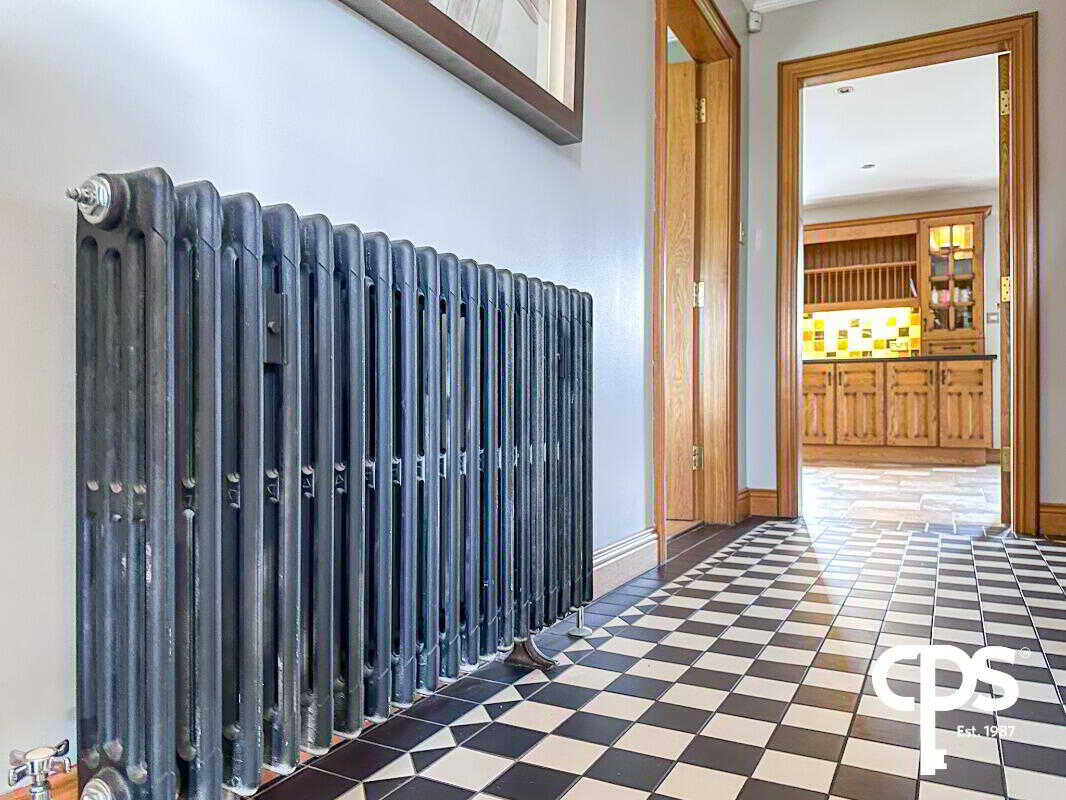 On entry to this property you are greeted with tasteful modern decor including chequered porcelain tiles throughout. The hall benefits from a substantial double height atrium which brings ample lighting into this area. This space also benefits from a double cast iron radiator. Access to the first floor via the solid wood staircase.