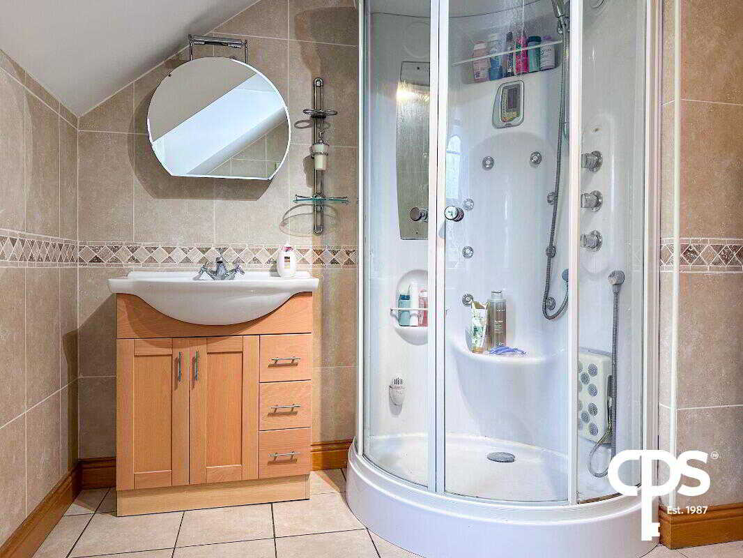 The downstairs W/C offers a three piece suite comprising of W/C, wash hand basin and corner shower. Also comprises porcelain tiled floors and fully tiled walls.