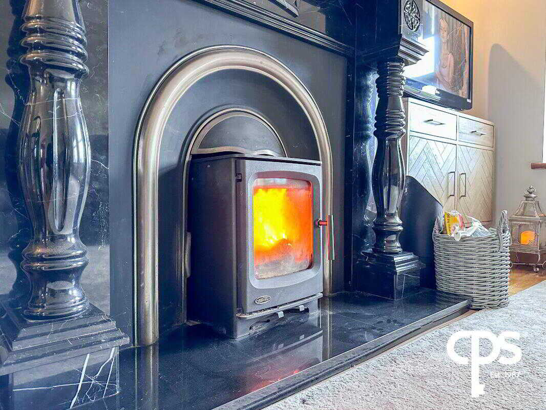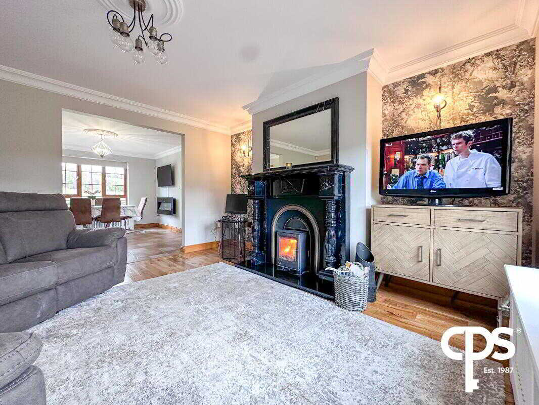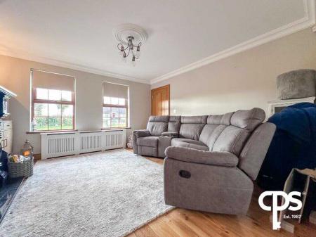 The living area boasts solid wood flooring throughout and benefits from large frontal facing windows create ample lighting. The room also has electrical points fitted throughout with a double radiator and boasts a multi fuel stove that sits on a granite hearth with a stunning marble surround creating a great space for entertaining guests or family.