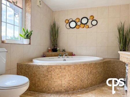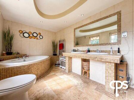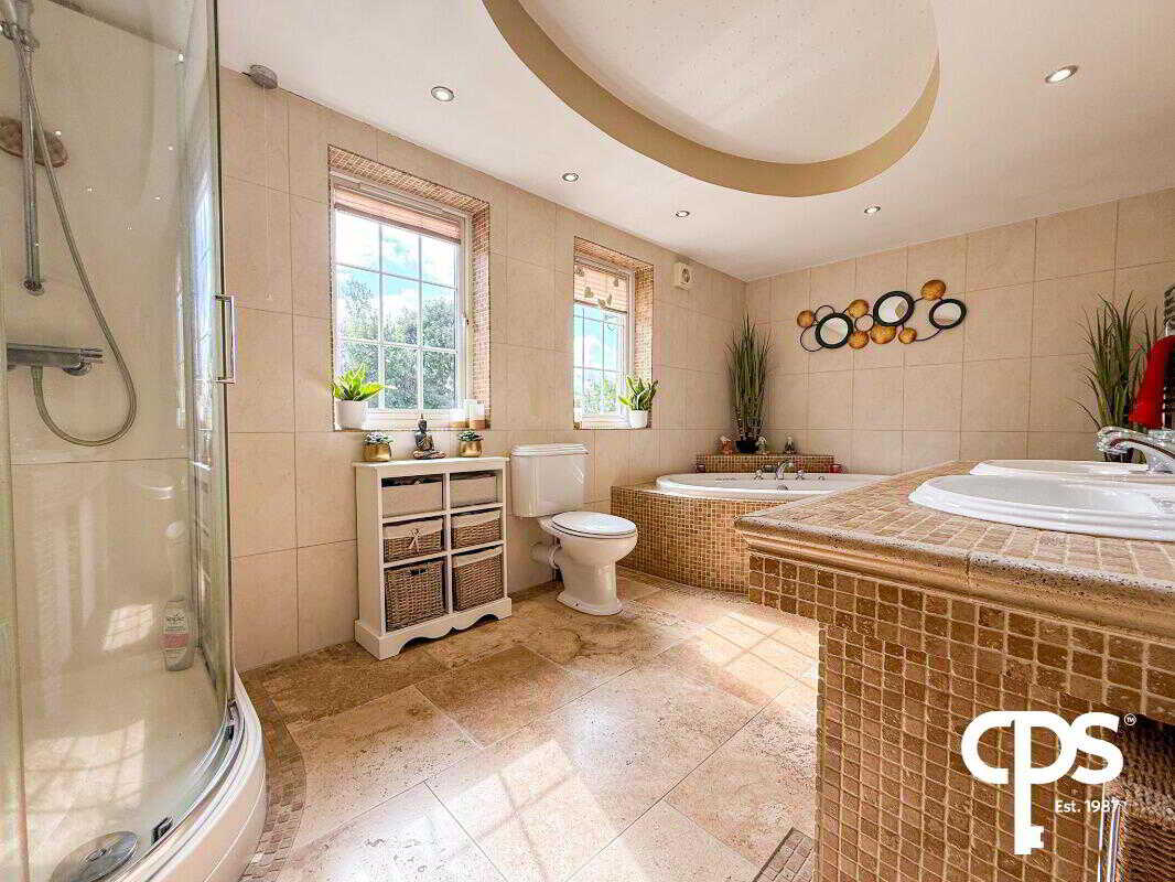 Main Bathroom (2.55m x 4.78m): Fully tiled with luxurious fixtures including a freestanding bath, double sink unit, separate shower, and w/c.