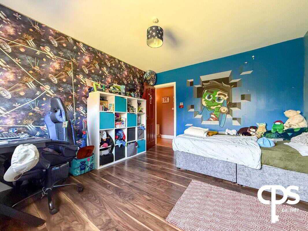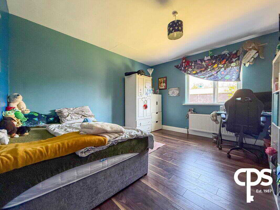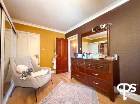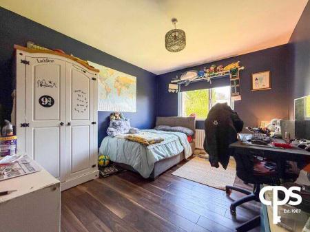Another well-sized double bedroom with front aspect, wood-effect flooring, and storage space.