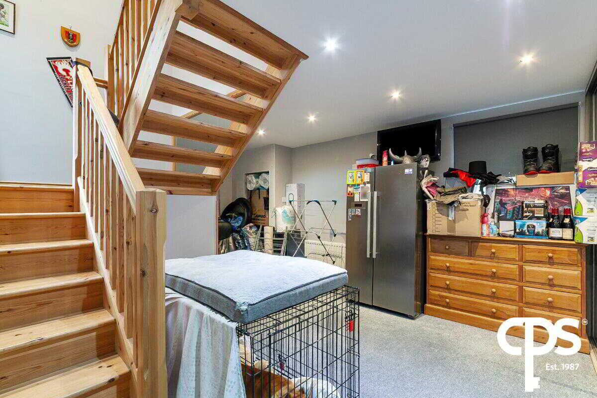Designed with versatility in mind, the layout spans multiple split levels and provides five bedrooms, three reception rooms, three bathrooms, and an integral garage with an annex-style area which is ideal as a guest suite, work-from-home setup, or multigenerational living.