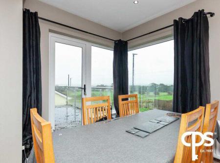 The home feels bright and spacious throughout, with large windows and elevated vantage points maximising natural light and framing the picturesque coastal and countryside views. The outdoor space includes a fully enclosed rear garden, paved patio, and raised planting beds, perfect for entertaining or relaxing.
