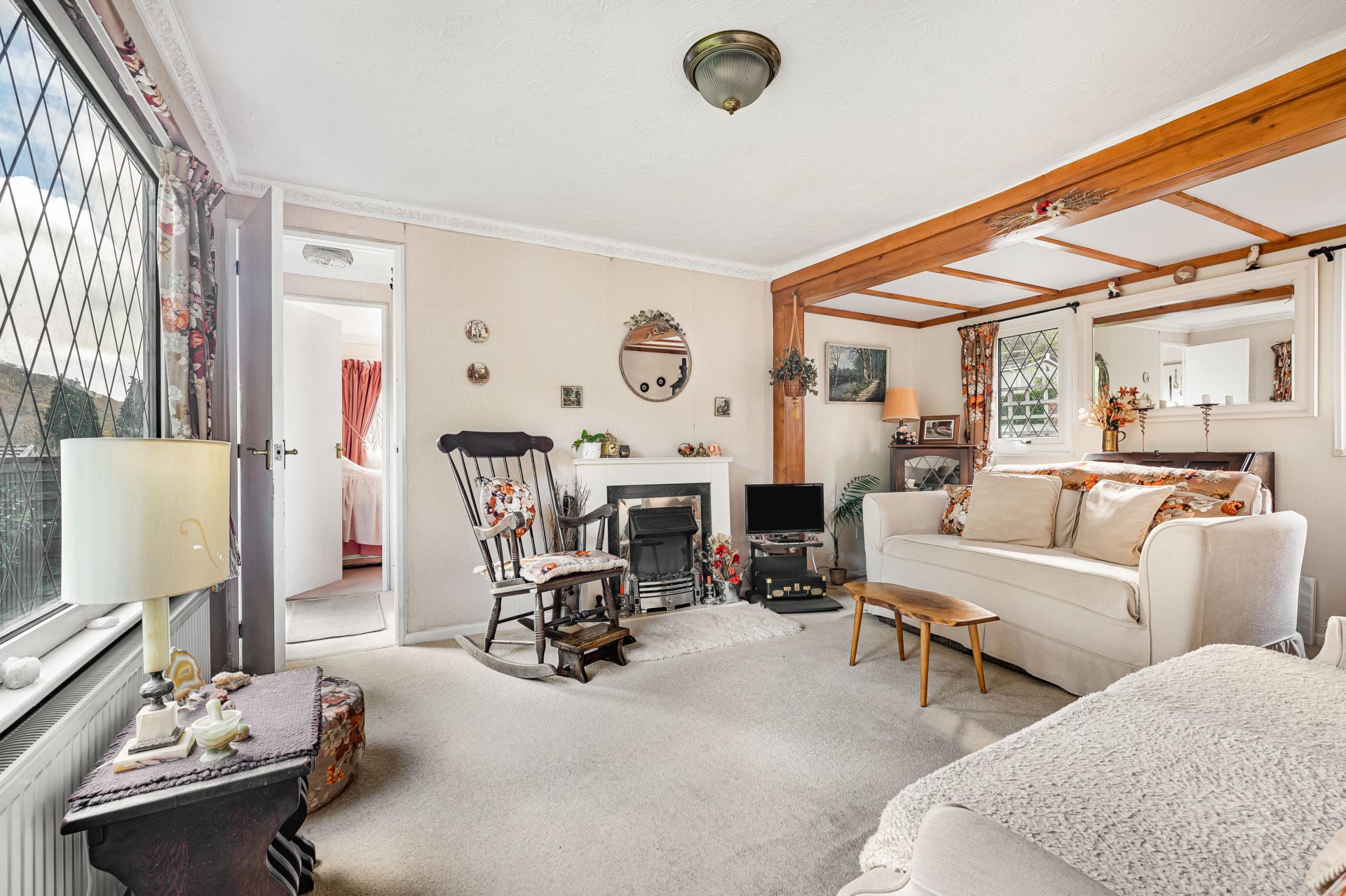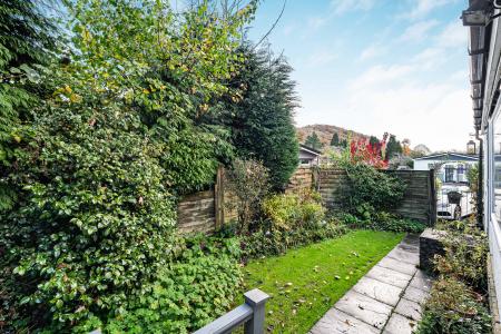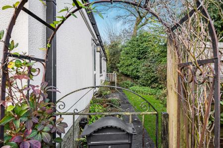 The home offers a thoughtfully arranged layout with two well-proportioned bedrooms, both benefitting from fitted wardrobes, a bathroom with walk in shower cubicle, a separate kitchen, and a light-filled extended lounge/diner featuring exposed beams that lend a touch of character and warmth. Outside, the private garden provides an ideal spot to relax and take in the soothing sounds of the nearby stream and full of mature shrubs and trees. There is also a useful shed in the rear garden fitted with power and light. Allocated parking sits conveniently beside the property for easy access.