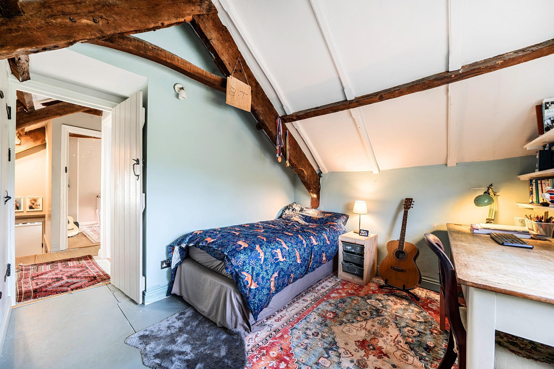- Exposed beams, stonework and period features throughout