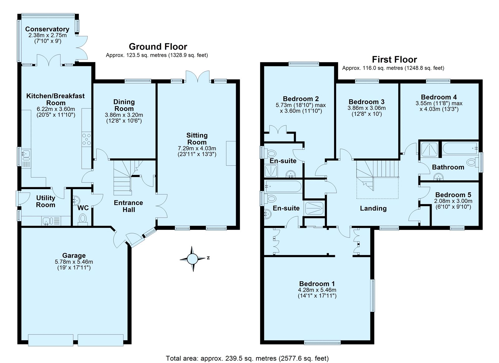 Offering spacious accommodation consisting of a generous entrance hall with a fitted kitchen / breakfast room leading out to a conservatory overlooking the garden. A generous living room with patio doors and a separate dining room, a utility room and cloakroom complete the downstairs accommodation. Upstairs again the accommodation is generous with a lovely landing with the principle bedroom being en suite with a dressing area. There are four further bedrooms and two bathrooms.