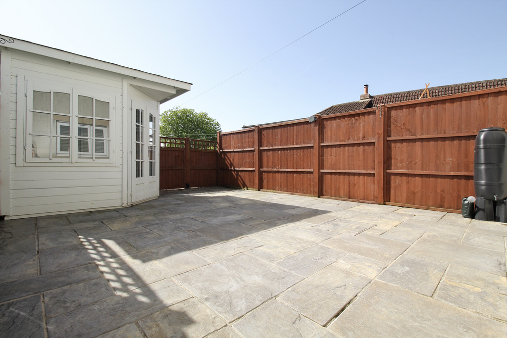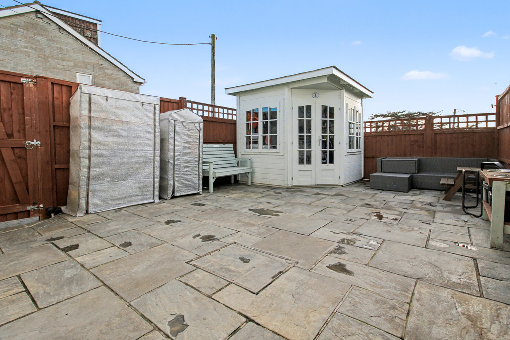 - Low-maintenance, south-facing paved garden with powered summer house, ideal for seating or storage, plus side gate access for convenience.
