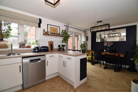 18' 1" x 9' 5" (5.51m x 2.87m) Double glazed window to rear. Double glazed patio doors to rear. Radiator. Modern range of base and wall units. Gas hob. Electric oven. Extractor with light. One and a half stainless steel sink. Space for fridge/freezer. Space for dishwasher. Localised tiling. Amtico flooring.