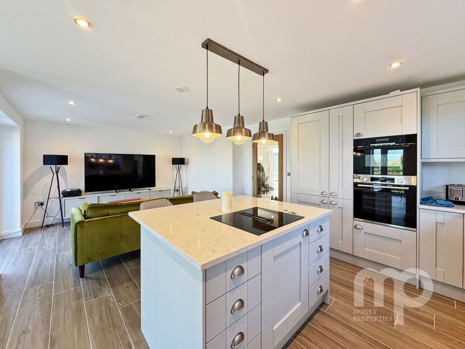 - Underfloor heating downstairs, radiators upstairs with air source heat pump and solar panels